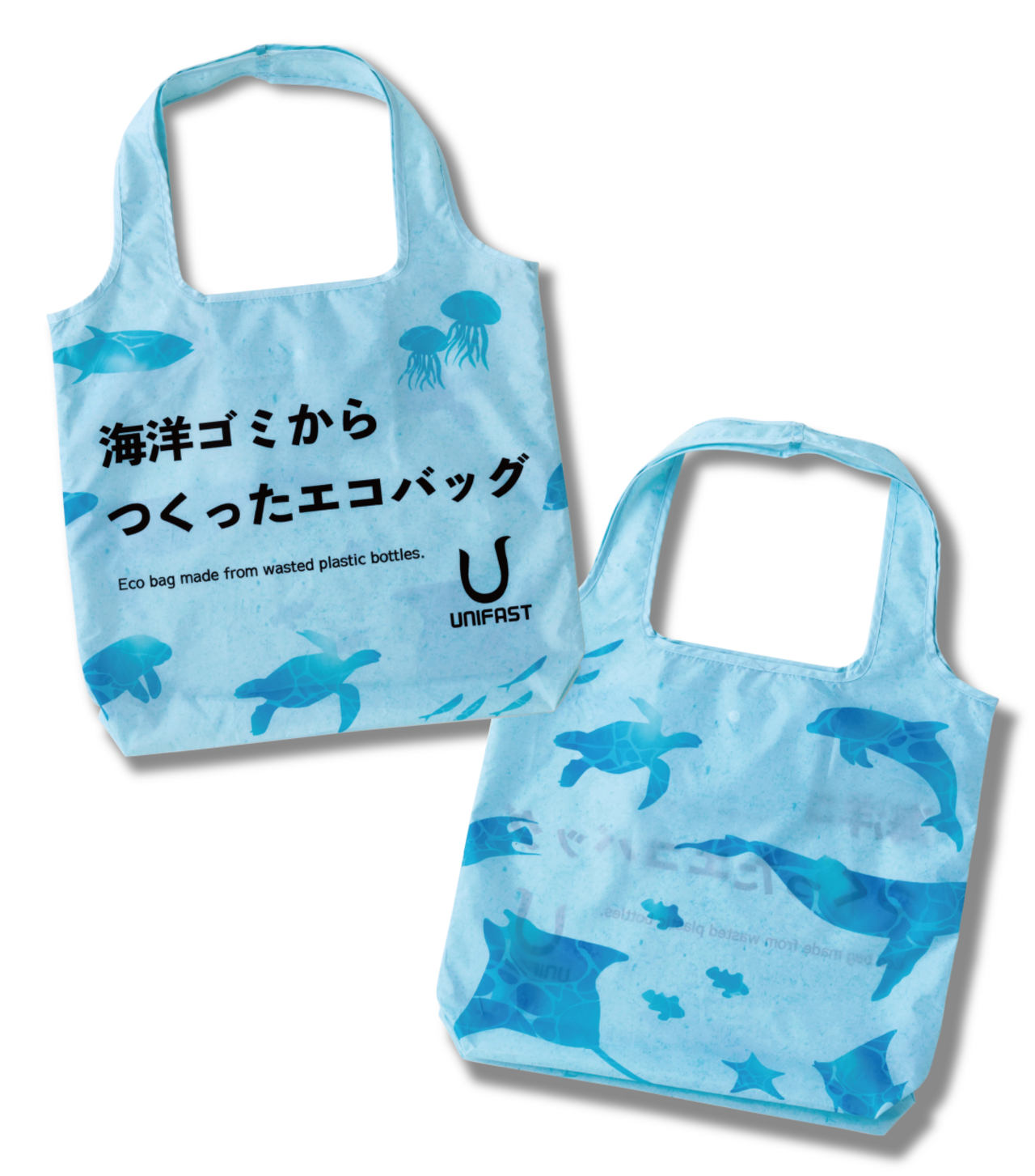 その第一弾が、この度企業向けに商品提案を開始した『海洋ゴミからつくったエコバッグ』で、毎日の買い物からお出かけ用まで用途がさまざまなエコバッグです。デザインはシンプルなトートタイプ。吊りポケット付きでコンパクトにたためるので、使い終わったあとは簡単に収納することができます。重さがわずか55gで、携帯性も抜群です。当商品の商品名には、「サステナをより身近に、日常生活でさりげなくサステナ」という願いが込められています。